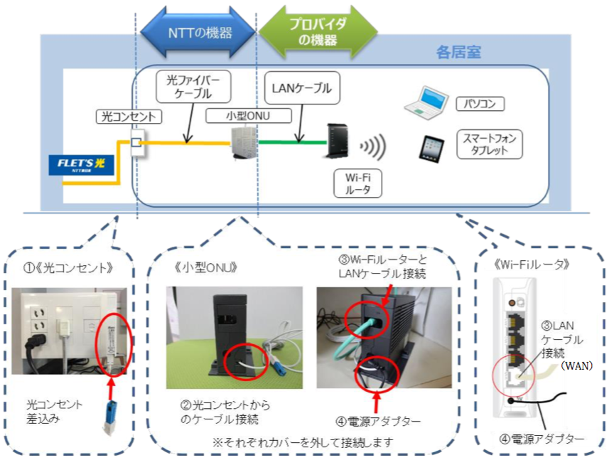 物件によって設置場所は、すべて異なります。また、利用の可否は申込後通信会社よりの設備判定後に「無派遣工事※1」と通知された場合のみです。また、最近では賃貸住宅内の設備利用にはトラブル防止の為、使用許可が必要な建物が増えてきております。ご利用前には、管理会社にお問合せ下さい。